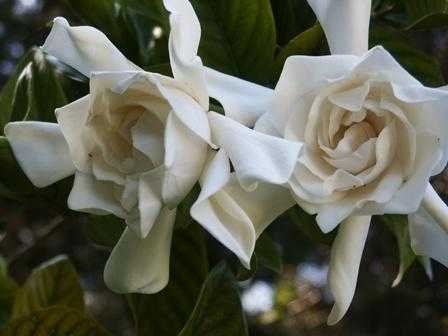 Denny’s entry today offers a gorgeous close-up of gardenia blossoms. They look velvety and creamy. I can almost feel their texture on my skin. And the scent! Imagine lying on a bed of petals, with a blanket of them covering you in a soft drift. I would savor the caress of such a gift.