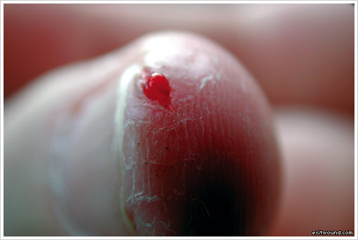 from my pen. I look down.