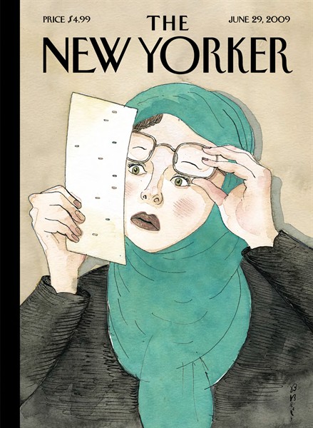 Below is the New Yorker cover for June 29, 2009. Claire looked at it tonight, and this is what she said (note: she is still confused on gender pronouns):